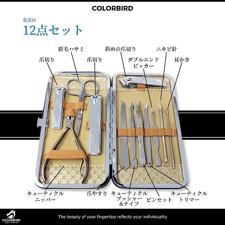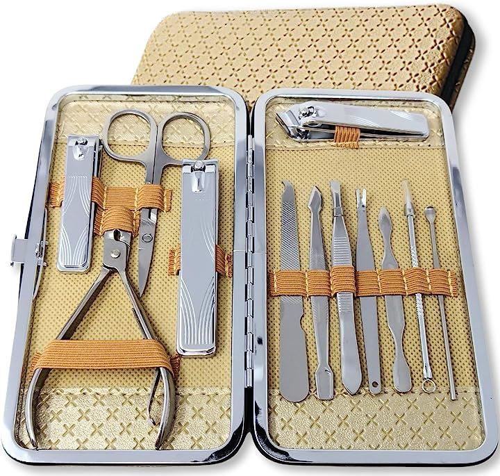 このセットには、爪切り、斜め爪切り、眉毛はさみ、爪やすり、ピンセット、耳かき、ダブルエンドピッカー、爪やすり、キューティクルプッシャー&ナイフ、キューティクルトリマー、ニキビ針が含まれています。