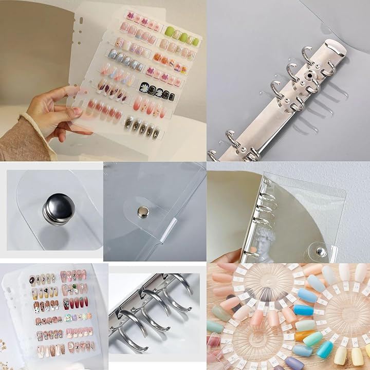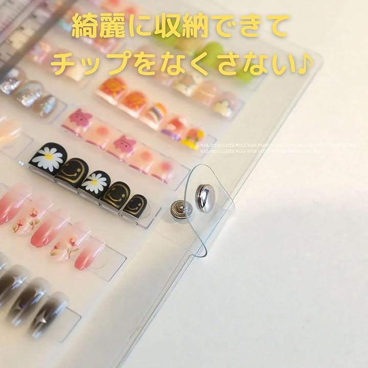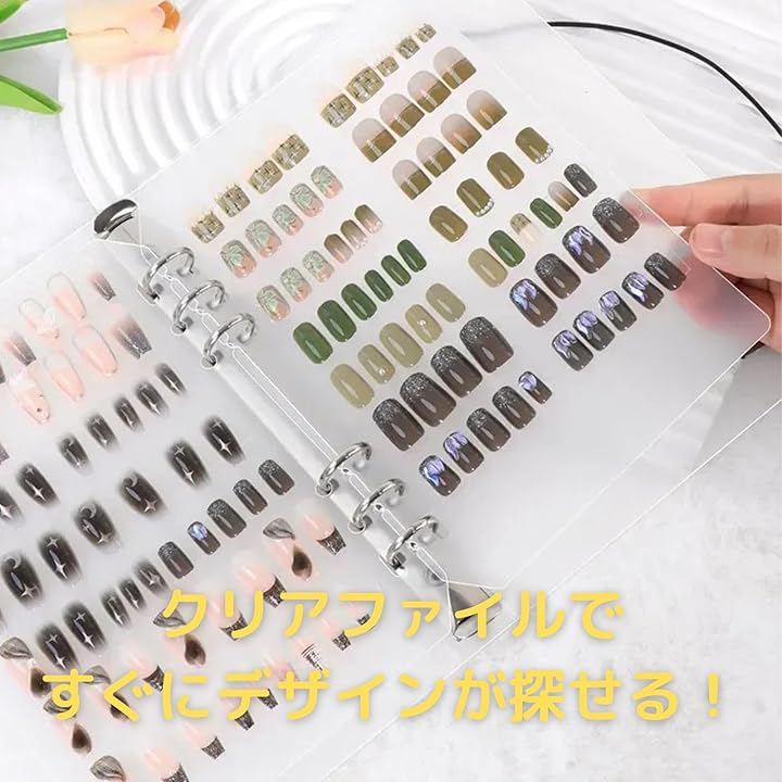 「収納革命。ネイルチップもおしゃれに管理」 A5サイズのクリアバインダーで、ネイルチップの整理が一瞬で楽しくなる。 透明だから、中身がサッと確認できて、探す手間ゼロ。