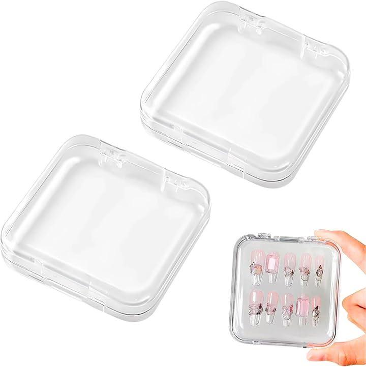 「商品詳細」 商品名:ネイルチップ ケース 2個セット サイズ:約7.5 x 7.5 x 1.6cm 素材:プラスチック カラー:クリア(透明) 内容:収納ケースx2個