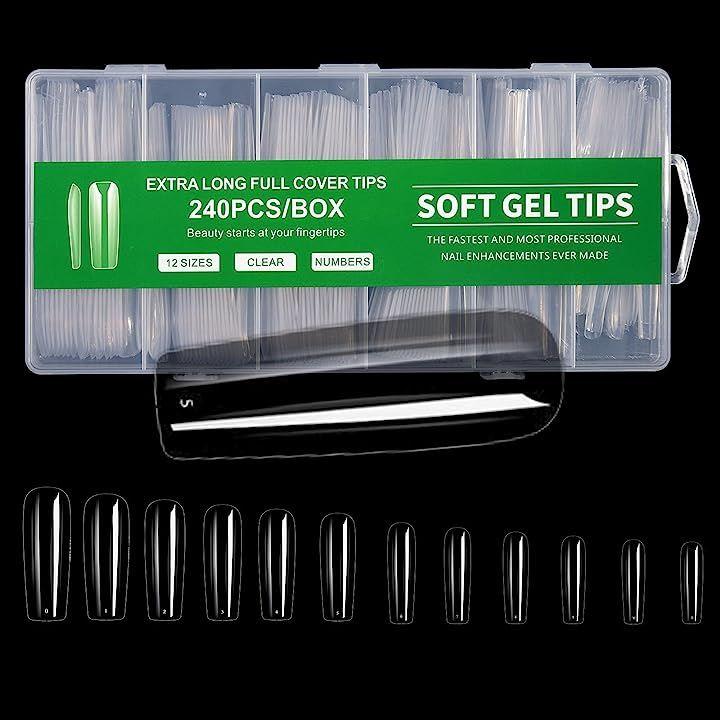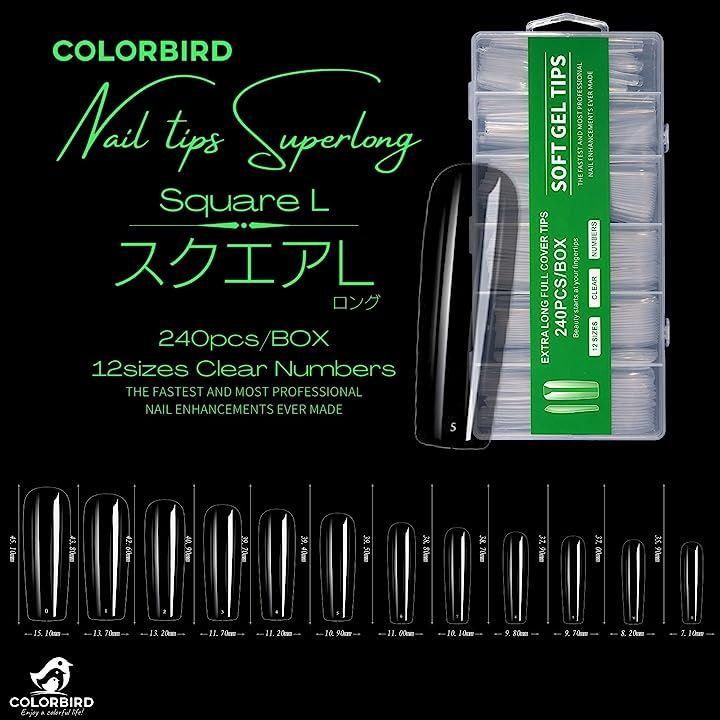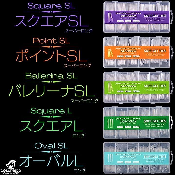 ・ネイルチップ スーパーロング 12サイズ 240pcs 長くて美しいネイルを楽しめるスーパーロングタイプ。