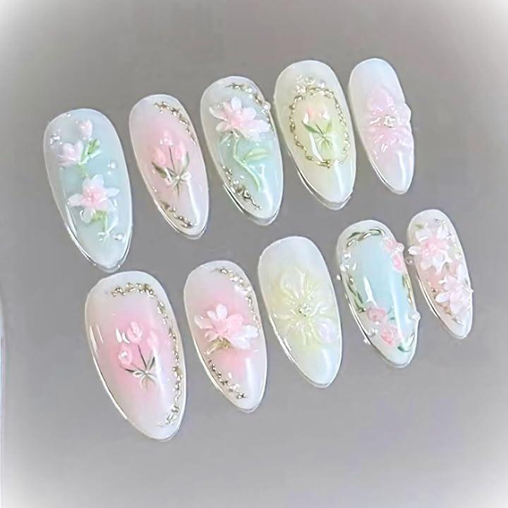 ミディアムポイントのシルエットで指をほっそり長く演出し、春のイベントや特別な日を華やかに彩ります。