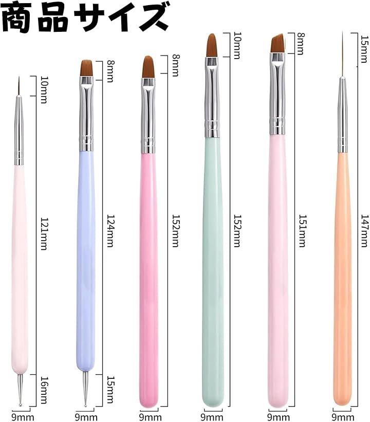 ジェルネイル・ネイルアートに最適な、6本入りのネイルブラシセットです。