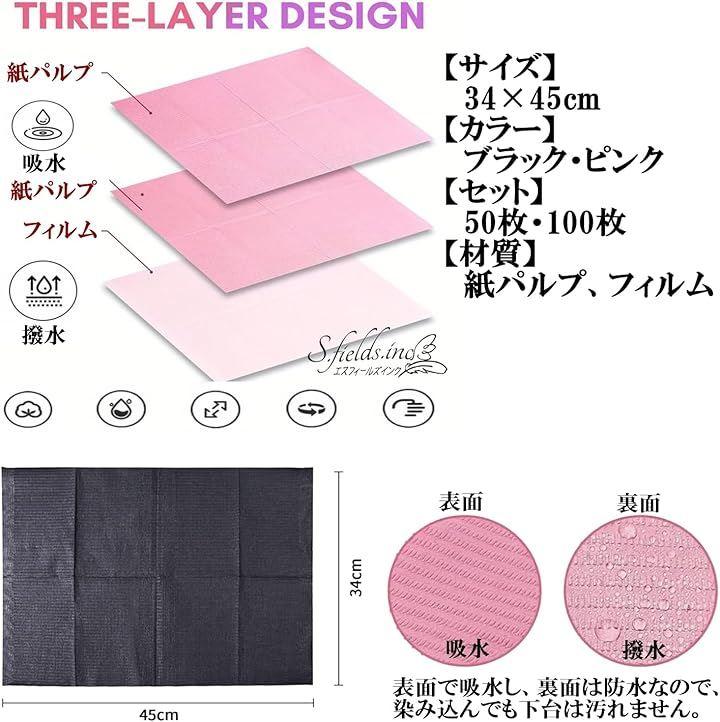 パルプ素材とフィルムの3層構造により、防水性と吸収性が高く、ネイル施術中のごみや汚れからテーブルや作業台を保護することができます。