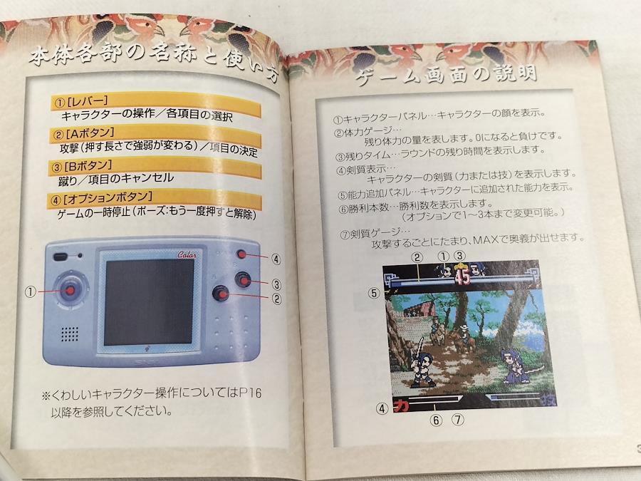 ■状態カセットの裏面にキズあり。パッケージや説明書少しヨゴレあり。ただ、年代で考えると状態はかなり良い方かと思います!たまたまネオジオポケットカラー本体があったため挿してみたところ、起動しました。
