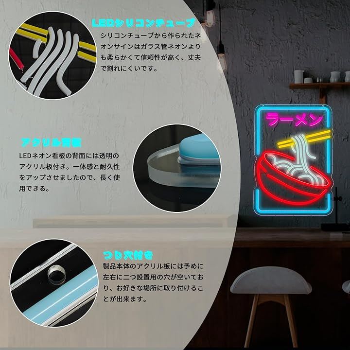 「安全で信頼性が高い」ネオンサインは高品質ABSプラスチックとLEDシリコンチューブから巧みに作られ、ネオン管は柔らかくて信頼性が高く、丈夫で割れにくいです、ガラスの破損や危険物漏れのリスクはありません、5V低電圧で動作するため、過熱の心配はありません、環境が暗くなるほどネオンライトの明るさが増し、点灯中は無音になります。