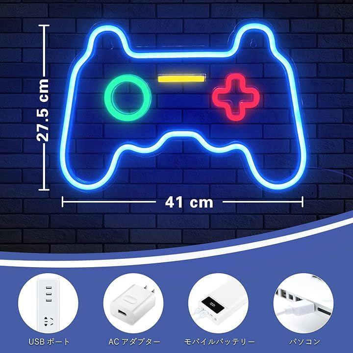 「手軽なUSB給電・取り付け便利」ゲームパッドネオンサインのサイズは41x27.5x2cmになります。