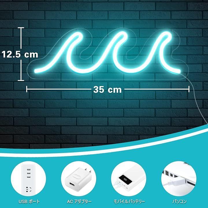 「手軽なUSB給電・取り付け便利」波ネオンサインのサイズは35x12.5x2cmになります。