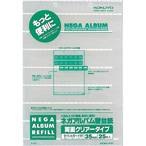 ■ネガアルバムア-202用のネガポケット替台紙です。//■35mm・7段ネガポケット両面クリヤータイプ25枚入り//■収容カット数(表のみ)/35mmフィルム42コマ//■タイトルカード付き