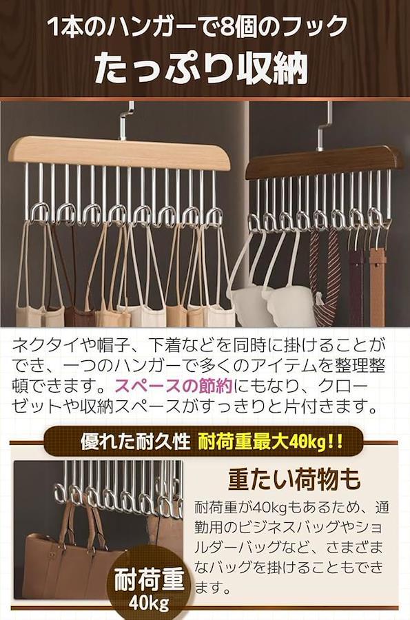 「たっぷり収納」ネクタイや帽子、下着などを同時に掛けることができ、一つのハンガーで多くのアイテムを整理整頓できます。