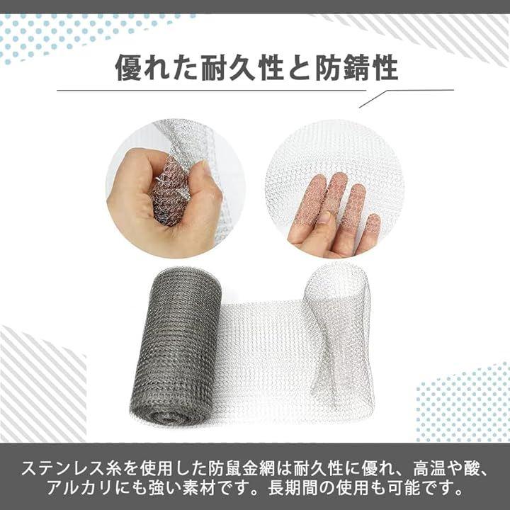 「優れた耐久性と防錆性」ステンレス糸を使用した防鼠金網は耐久性に優れ、高温や酸、アルカリにも強い素材です。