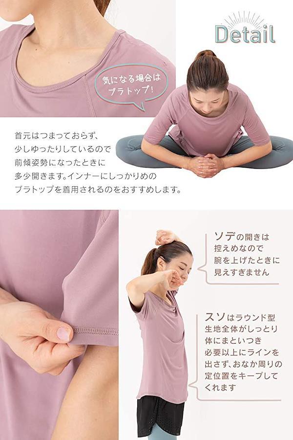 肩がつっぱらないデザインで、腕の動きを妨げない楽な着心地の ヨガウェア 」 .