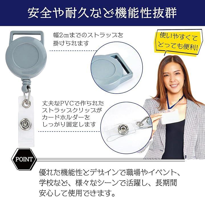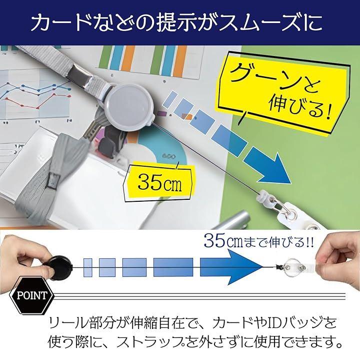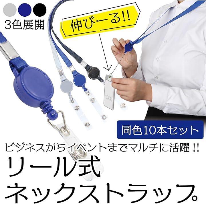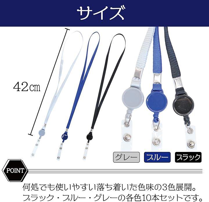 「カラー」ブラック・ブルー・グレー「サイズ」全長:約42cm ストラップ リール長さ:約35cm リール幅約4.2cm リール厚み約1cm 「内容量」10本セット
