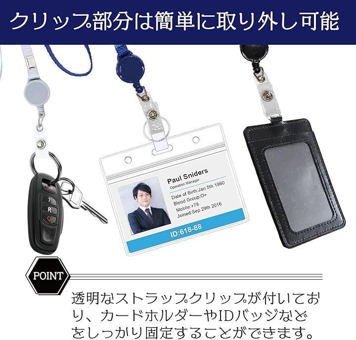 透明なクリップが付いており、カードホルダーやIDバッジをしっかり固定することができます。