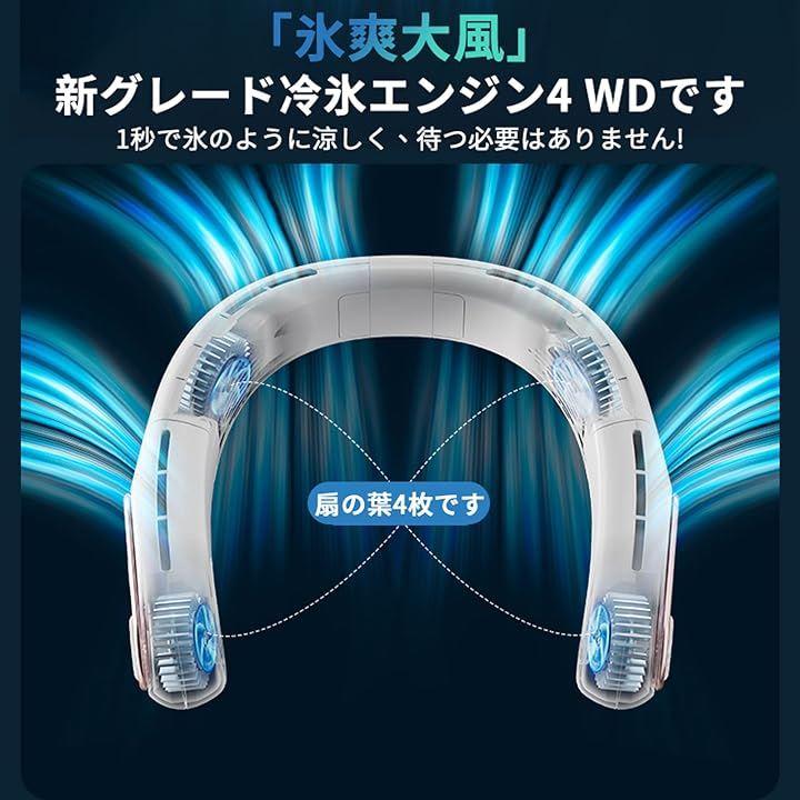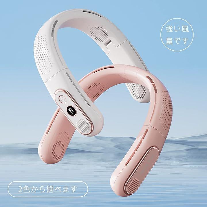 「首掛け扇風機」数値表示 ハ羽根なし折りたたみ首掛けファン。
