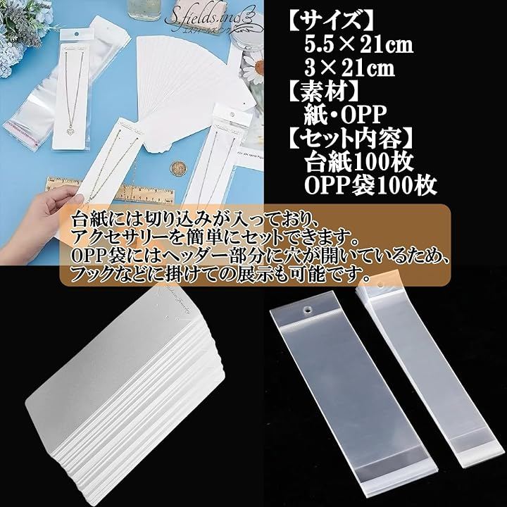 「サイズ」5.5x21cm、3x21cm 「素材」紙・OPP 「セット内容」台紙100枚+OPP袋100枚