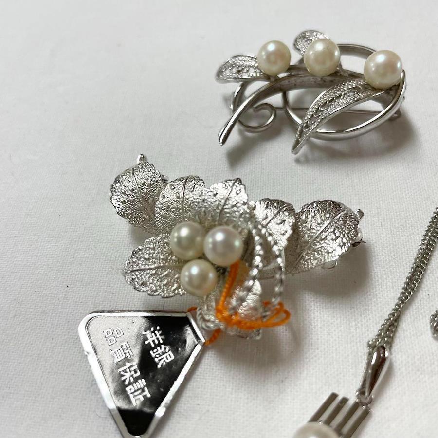 【商品名】ネックレス ブローチ パール 真珠 まとめ売り 洋銀 シルバー ヴィンテージ レトロ イミテーション