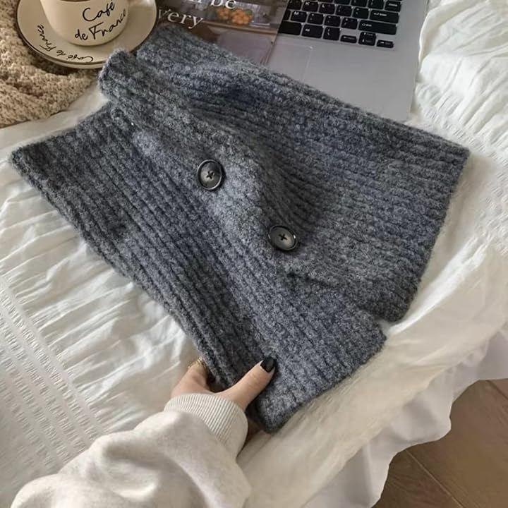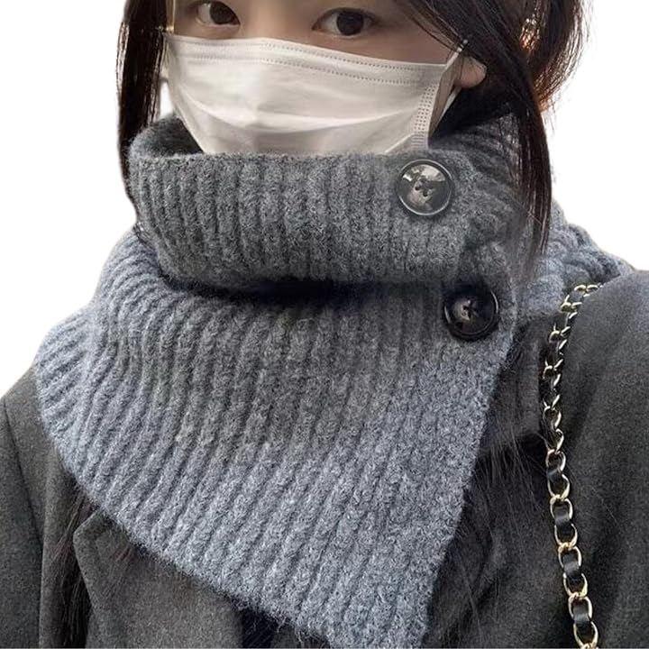 ネック ウォーマー マフラー スヌード ニット ボタン シンプル 無地 レディース カバー ガード 防風 防寒 小顔効果 保温