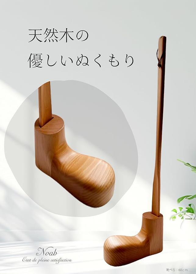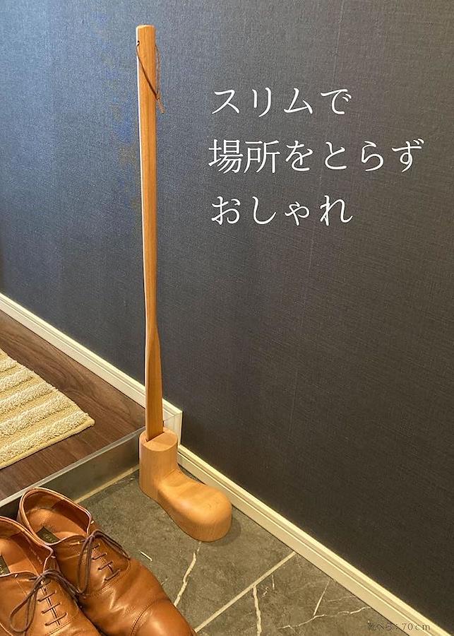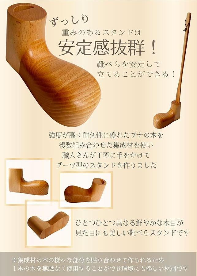 ブーツ型スタンド付靴べら60cm *強度が高く耐久性に優れたブナの木を複数組み合わせた集成材を使い、職人さんが丁寧に手をかけてブーツ型のスタンドを作りました。