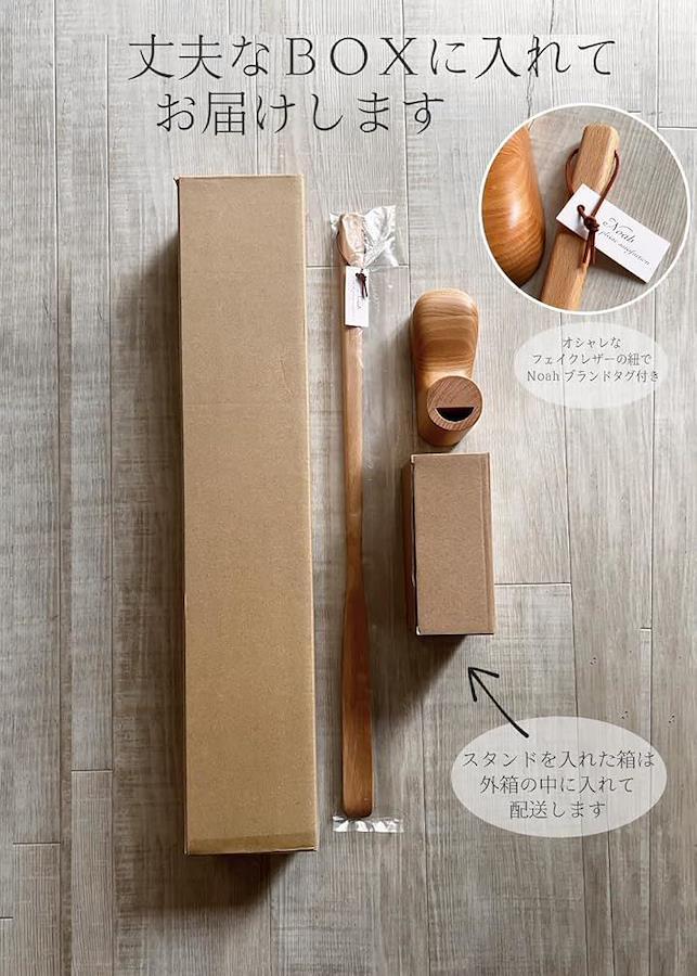 丁寧な加工ですべすべ滑らか、木製スタンド付き靴べら