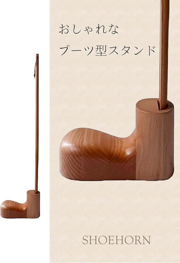 丁寧な加工ですべすべ滑らか、木製スタンド付き靴べら