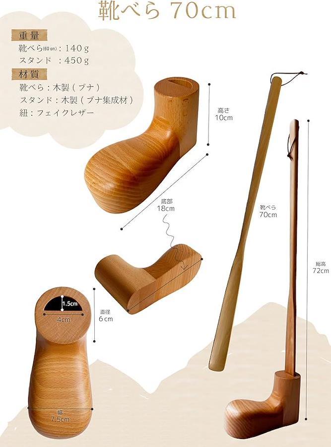 サイズ:靴べら 70cm、ブーツ型スタンド 18x7.5x高さ10cm