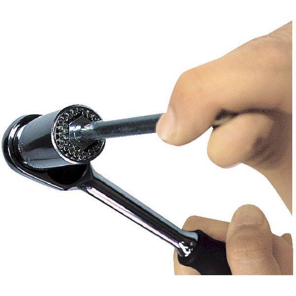●ソケット内部の54本のスチールピンが三角、四角、六角ナット、トルクス[[R下]]ねじ、フックねじ、アイボルトなどの他、多角形ねじやナットをがっちりつかみます。