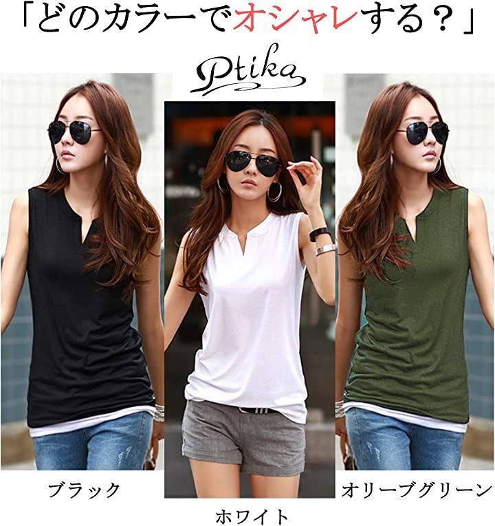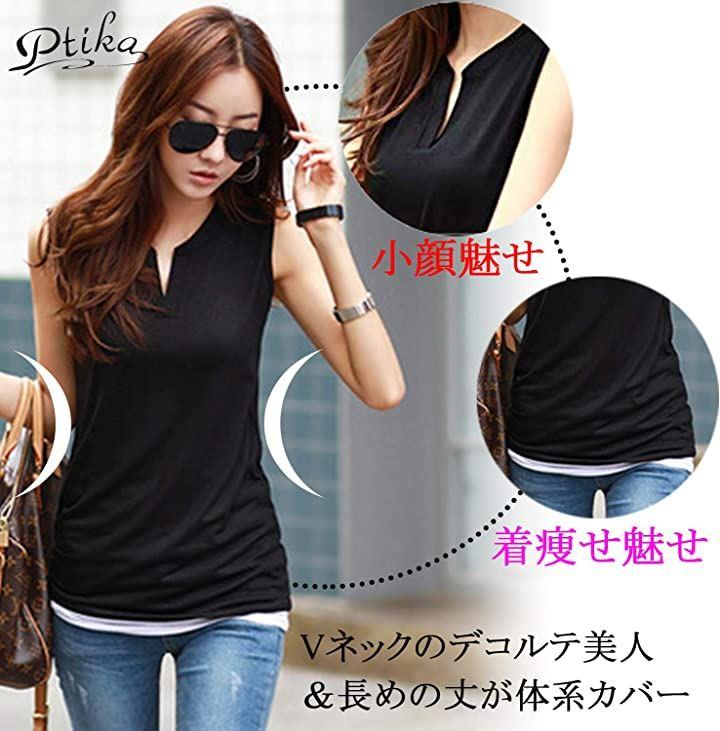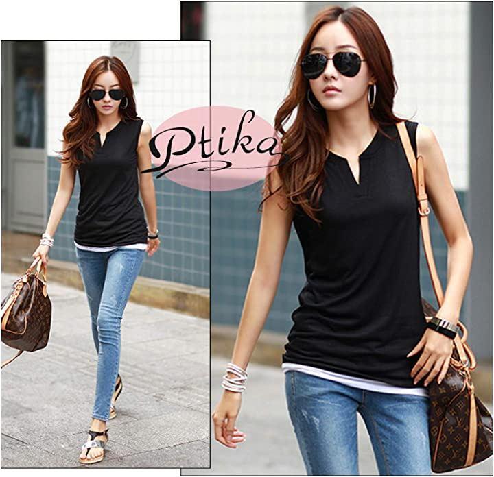 PtikaノースリーブVネックレディーストップスTシャツ洗濯ネット付き