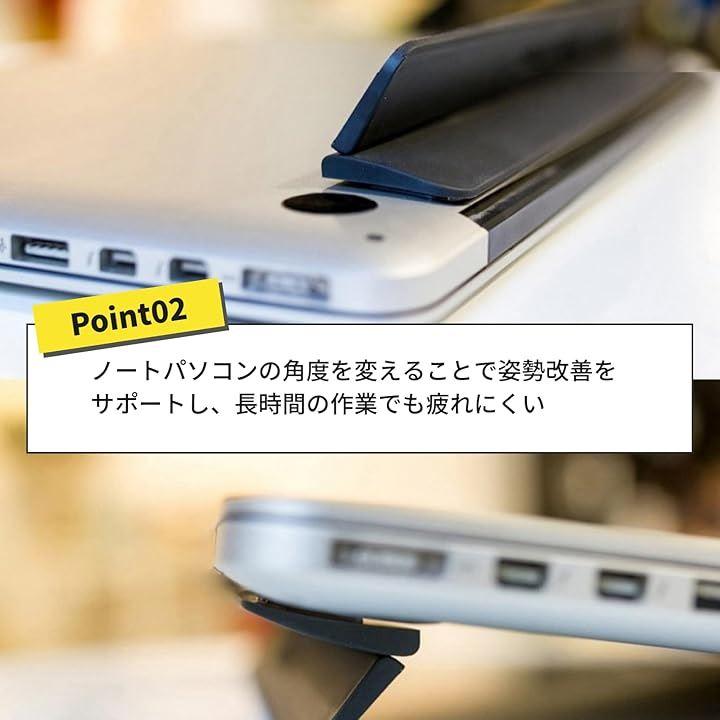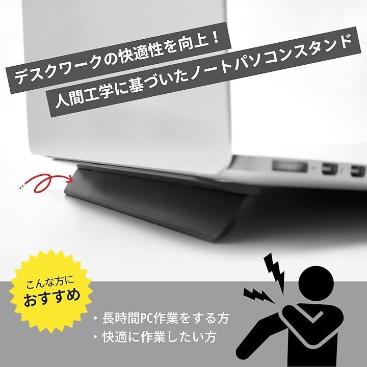 デスクワークの快適性を向上させる、人間工学に基づいたノートパソコンスタンドです。