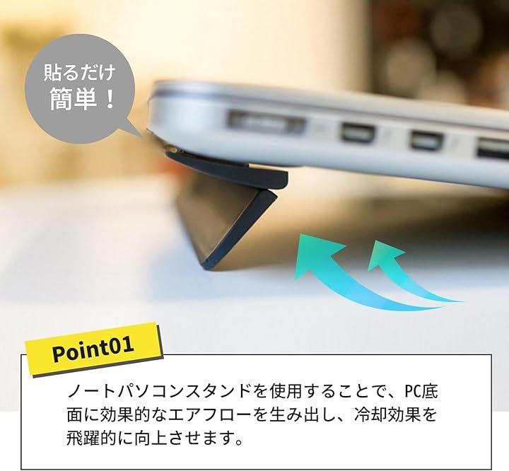 ノートパソコンスタンドを使用することで、PC底面に効果的なエアフローを生み出し、冷却効果を飛躍的に向上させます。