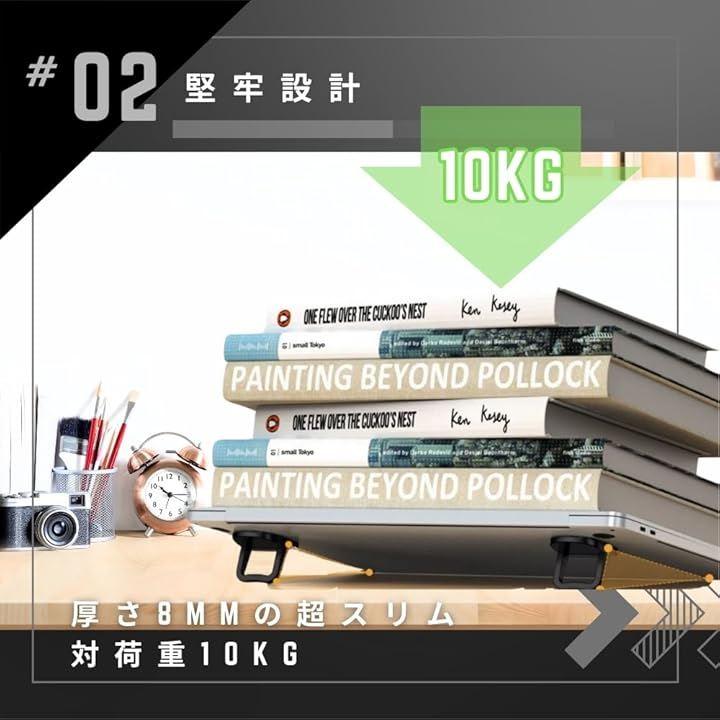 「堅牢設計」厚さはわずか8mmの超スリムなスタンドなので、常時ノートパソコンに付けていても邪魔になりません。