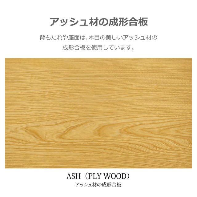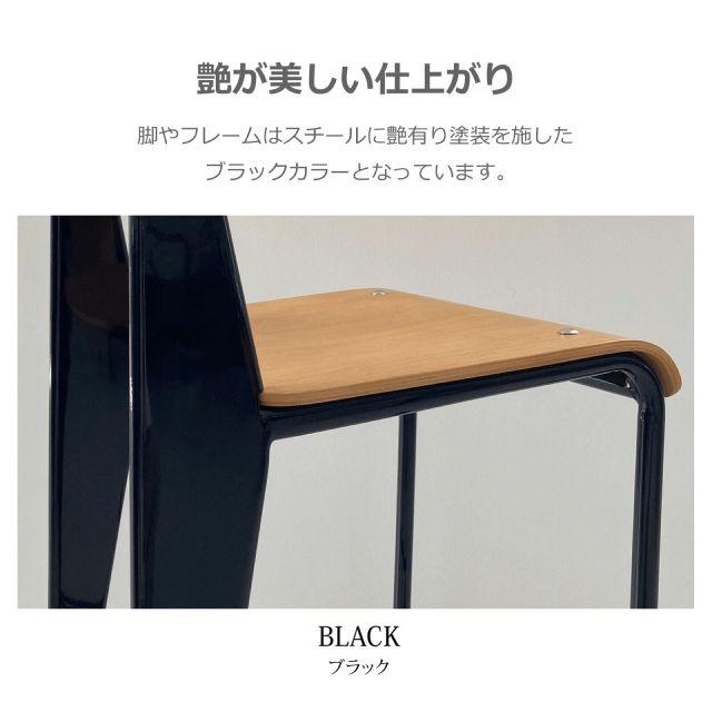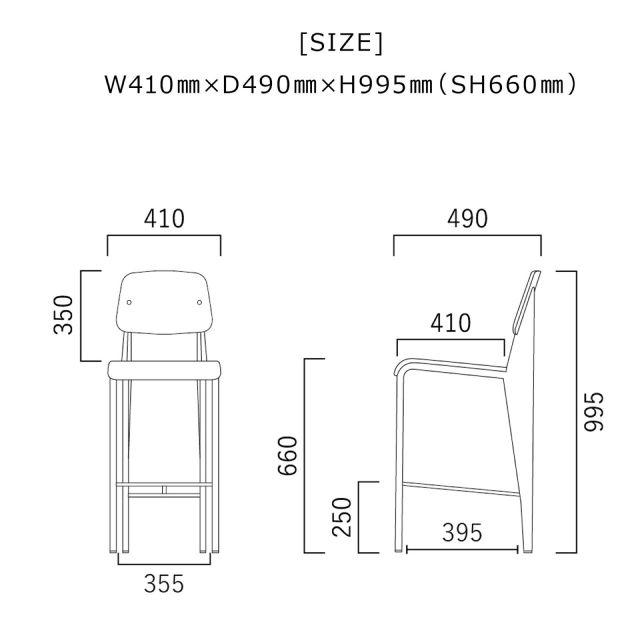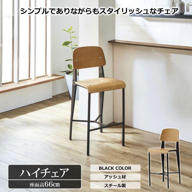 シンプルでありながらもスタイリッシュで、どんな空間にもマッチするハイチェア。後ろ脚は安定感のある三角形、前脚は細い丸脚になっており、見る位置によって表情が変わります。