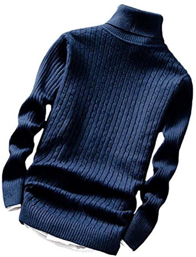 *ハイネックデザインのリブ編みタートルニット*