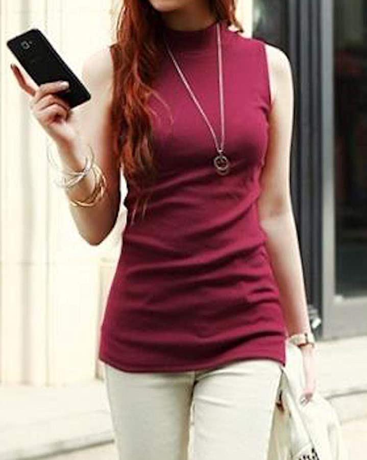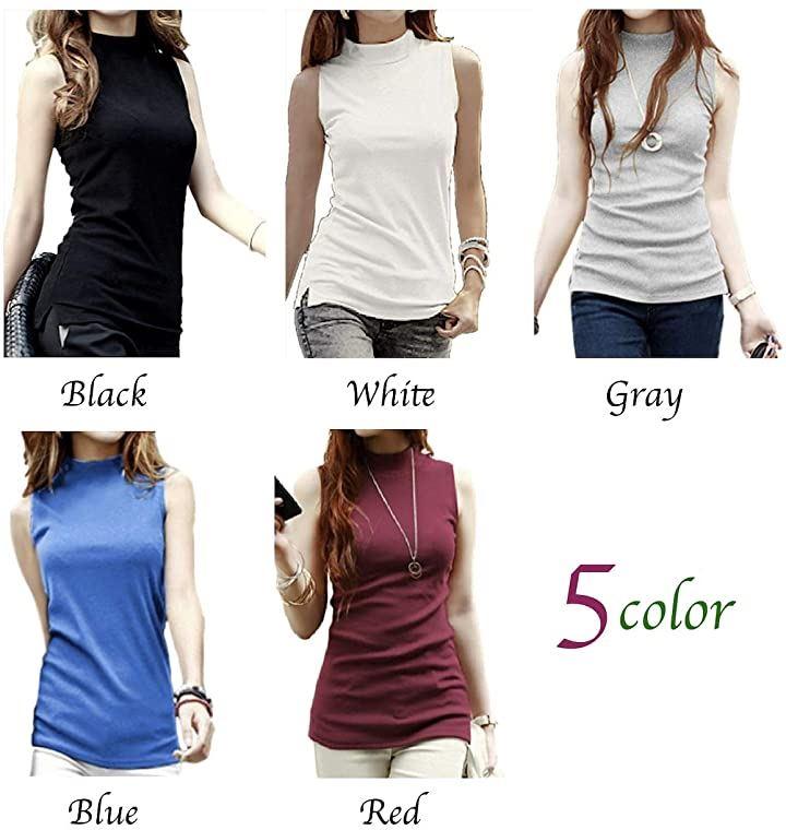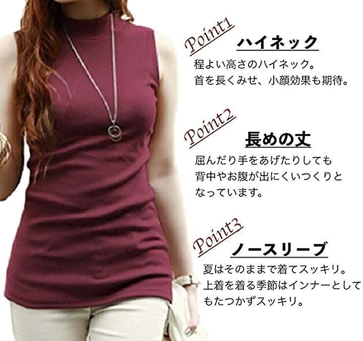 ハイネックが苦手な方にもお勧めです。春夏秋冬オールシーズン着られる可愛いノースリーブトップスタンクトップ。