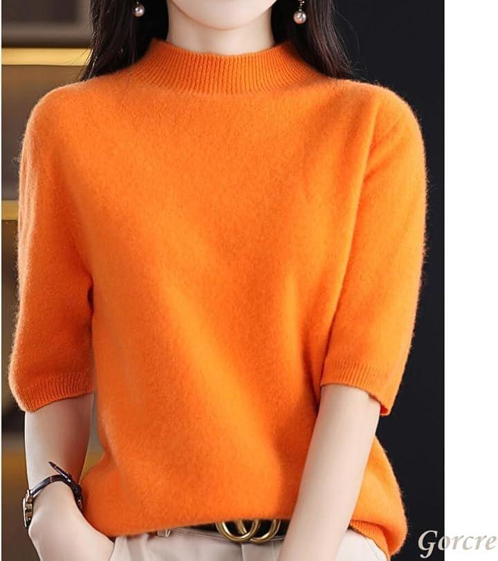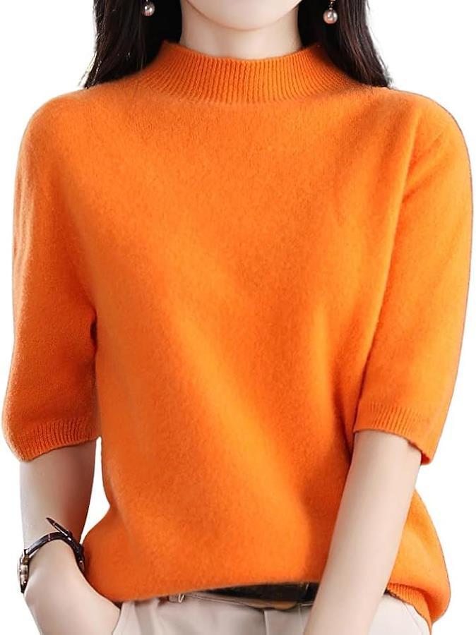 「ずっと続く美シルエット」かゆくない・伸縮・あったかで、春・秋・冬はずっと上品美シルエットでおまかせ。ハイネックでリブニット半袖トップスのお届けです。