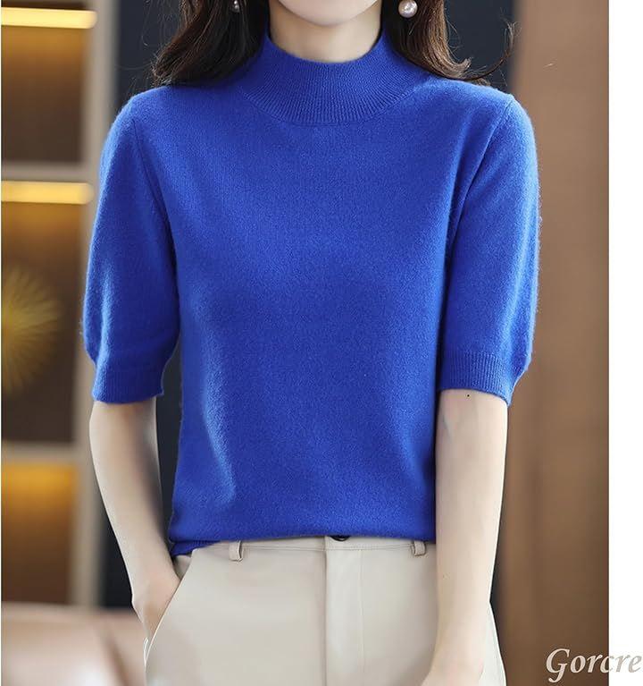 「ずっと続く美シルエット」かゆくない・伸縮・あったかで、春・秋・冬はずっと上品美シルエットでおまかせ。ハイネックでリブニット半袖トップスのお届けです。