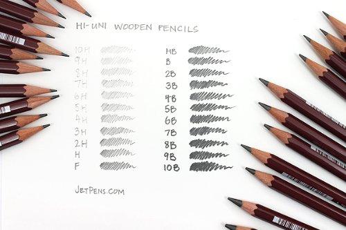 なめらかな書き心地を誇る、ロングセラー商品のハイユニ鉛筆!【特長】・学生からプロまで愛用者の多いユニブランド。ロングセラーの なめらかな書き心地を誇るハイユニ鉛筆です!・鉛筆芯の材料である黒鉛と粘土が微粒で均一なので、より黒く、 なめらかな書き味できれいに書くことができます。また、折れにくい鉛筆芯です。・日本の伝統色えび茶色と、高級感をイメージしたワインレッドを掛け合わせた軸色に、 金字で6面に硬度表示し、金色のリングをつけた高級感のあるデザインです。