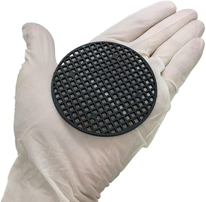 ・カラー:黒 材質:プラスチック 直径:75mm 厚み:1.4mm 網目:2x2mm 重量:3.8g/枚