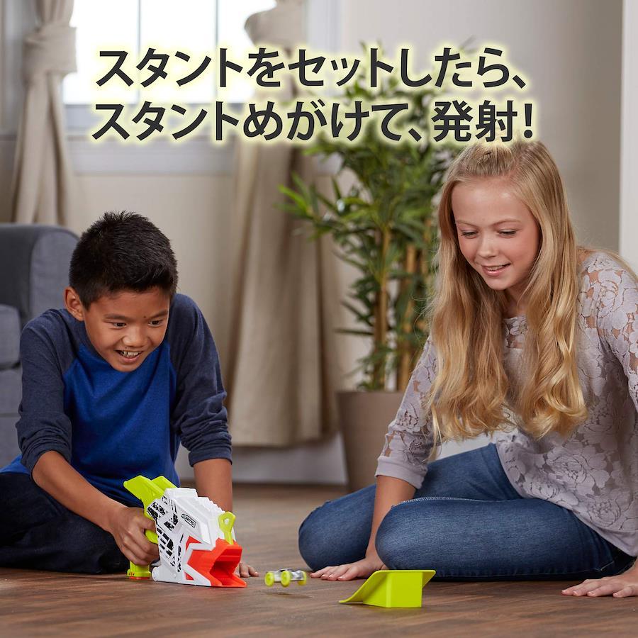 ナーフから、対象年令5才以上の新しいカテゴリー、ナーフナイトロが登場! ブラスターからくるまを発射! エアロフューリーランプレイジは電動ブラスター(電池は別売りです。単三アルカリ電池4本)。ロングジャンプスタントができる。別売りのスタントセットを使って自分だけのコースを作り、より難しいスタントにチャレンジ!