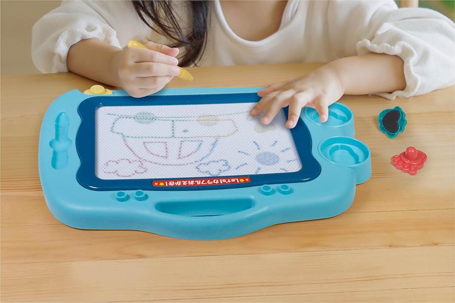 描いて消して、何度でも楽しく遊べるおえかきデスク。インク不使用で汚れません♪組立て簡単なデスク&脚を取り外せばおえかきボードにもなる2wayタイプ。カラフルな4色ボード使用でなので、可愛い絵が描けます。まる型&ハート型のキュートなスタンプ付き。