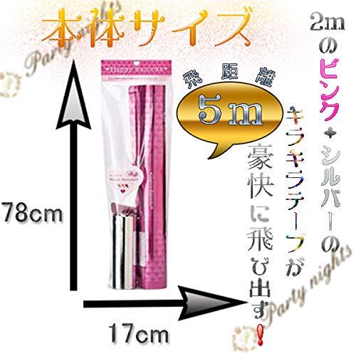 トリガーを引くと、発音と共にピンク+銀のキラキラテープが豪快に飛び出します。