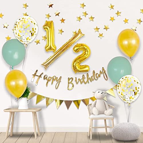 パッケージ内容:・HAPPY BIRTHDAY ガーランド 1個 ・スターチェーン 1個 ・フラッグガーランド 紐付き ・リボン ・ラテックスバルーン 6個 ・数字バルーン:「1」1個、「2」1個、「/」1個 用途:生まれて6か月のハーフバースデーのお祝いに、華やかなバルーンデコレーションキットで飾り付けを。 厳選されたアイテムを組み合わせた、シンプルかつおしゃれな誕生日飾りセットです。??商品の撮影には最大限注意を払っておりますが、閲覧時のモニター環境によりましては実際の商品と若干違うお色味に映ることもございます。※こちらのセット商品は、膨らんでいない状態でのお届けになります。風船を浮かせるには、別途ヘリウムガスのご用意が必要です。風船を浮かせず、養生テープなどで壁に軽く固定するなどしてかわいく飾り付けをすることも可能です。 ゴム風船はゴムの木(樹液)から作られる環境循環が可能な世界的にみてもまれな存在です。ハッピーバルーンマルシェ は、そんな環境に優しいゴム風船の中から、一定の品質をクリアした良質なゴム風船だけを選び出し、本キットをご提供しております。 アフターサポートも安心の日本企業がお届けします!:ハッピーバルーンマルシェ は日本企業が運営するブランドです。この商品は日本国内からお客様に発送しております。万が一のアフターフォローも当店のスタッフが対応いたしますので、お客様にはより安心してご購入いただけます。