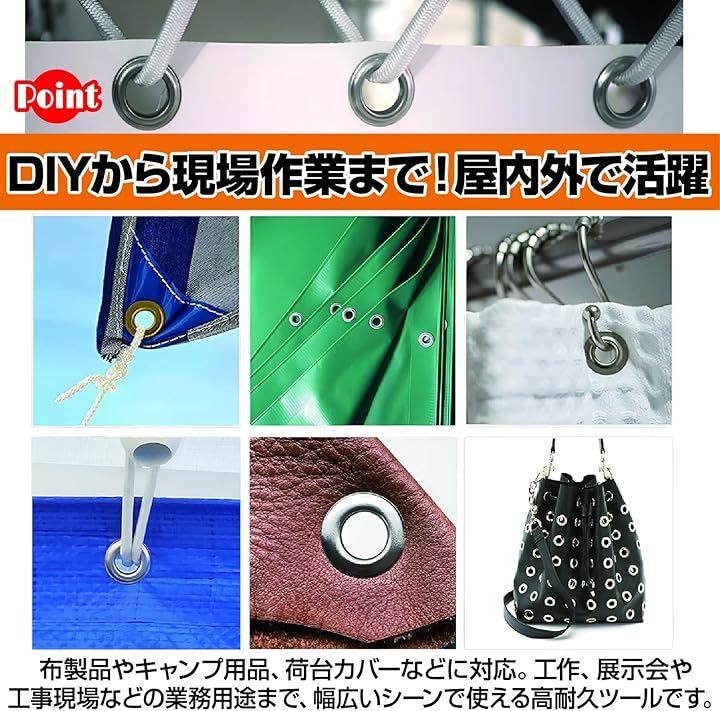 サイズ」 ハトメサイズ:内径約10mm、外径約18.5mm、高さ約6mm、プライヤーサイズ:約21.5cmx16cm *製造工程上、サイズに若干の誤差がある場合があります。