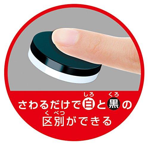 自分の色の駒を置いて相手の色の駒を裏返す「リバーシ」セットです。この商品は視覚障害をお持ちの方と一緒に開発しました。遊びやすい様々な工夫を取り入れました。工夫1:透明の盤面に凸凹を採用。コマがフィットしてずれにくいのでラインがわかりやすい。工夫2:コマの黒面は特殊な表面加工を行っていて、指で触ることで白と黒を判別できる。視覚障害をお持ちの方が出来るだけストレス無く、一緒にリバーシを楽しめる仕様にこだわりました。2017共有玩具に認定されています。[セット内容]本体1個、駒64個分(白黒ランナー各4枚)(.co.jpより) 対象年齢 :6才以上