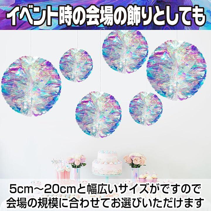 雰囲気を明るく盛り上げることができる:見る角度によって色味が異なる色鮮やかなオーロラカラーのハニカムボールですので、パーティーの雰囲気を明るく盛り上げることができます。