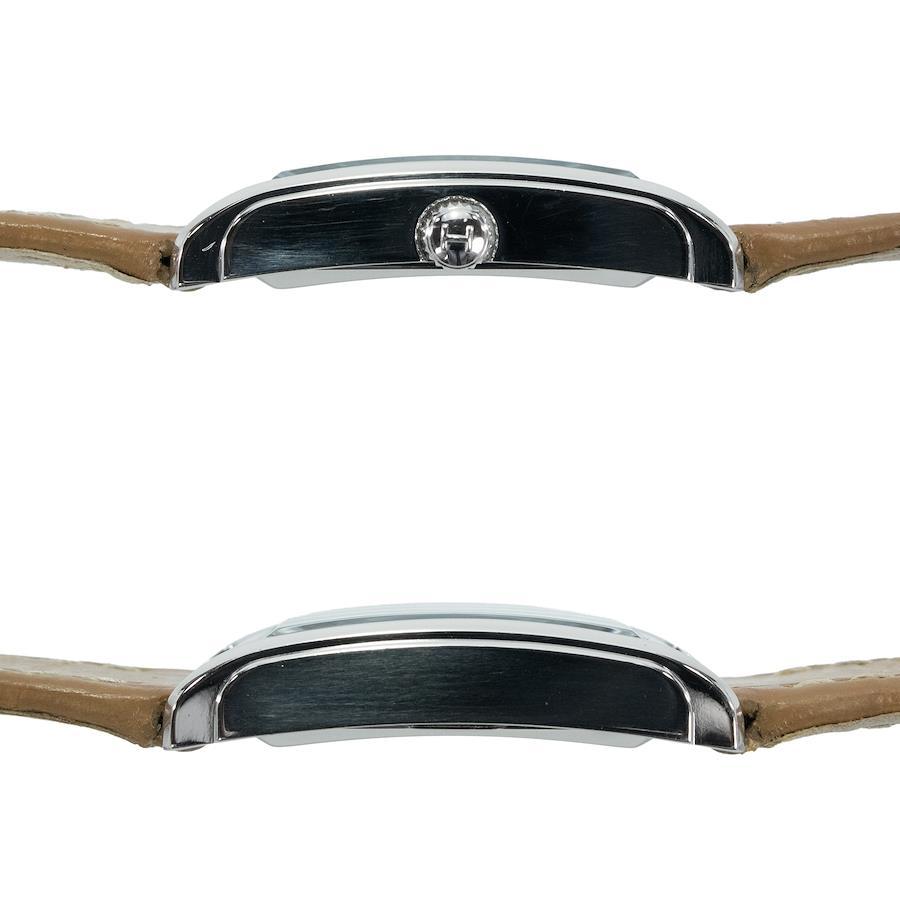こちらは小さなレクタンギュラーケースが、手元を知的に飾ってくれる、ハミルトンの腕時計でございます。