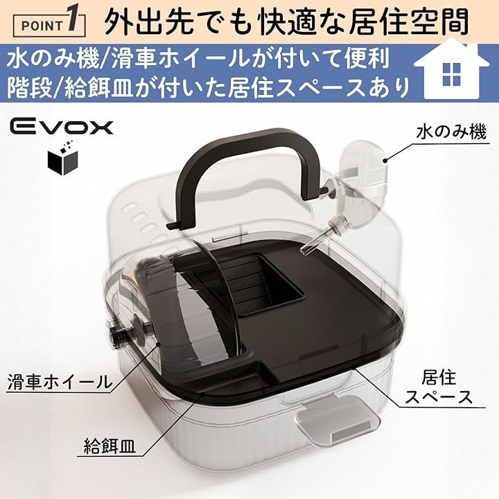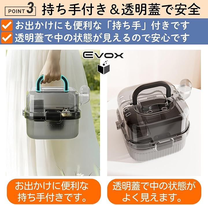 小動物が安心して過ごせるよう配慮した作りで、ハムスターケージとしてもキャリーケースとしても使える多用途タイプです。