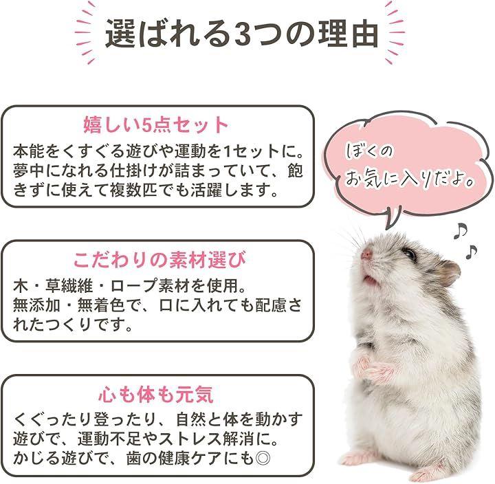 ハムスターの知育と運動をサポートする5点セットおもちゃです。