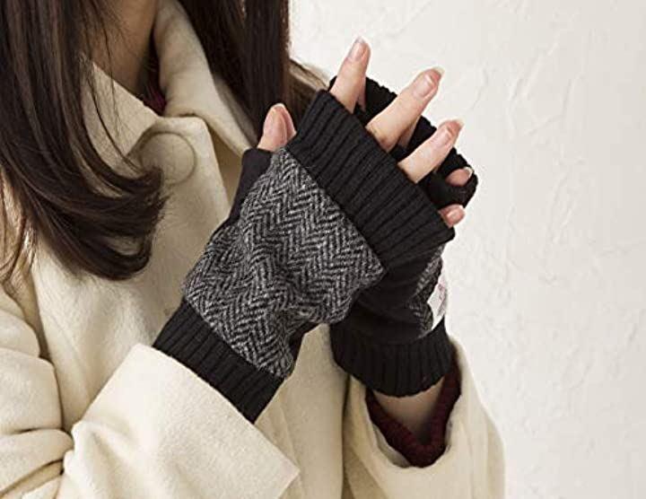 太めのリブを指先と手首部分に付ける指先が出るオープンタイプなので、適度にフィットして風を通しづらく、両手をあたたかく包みこんでくれます。