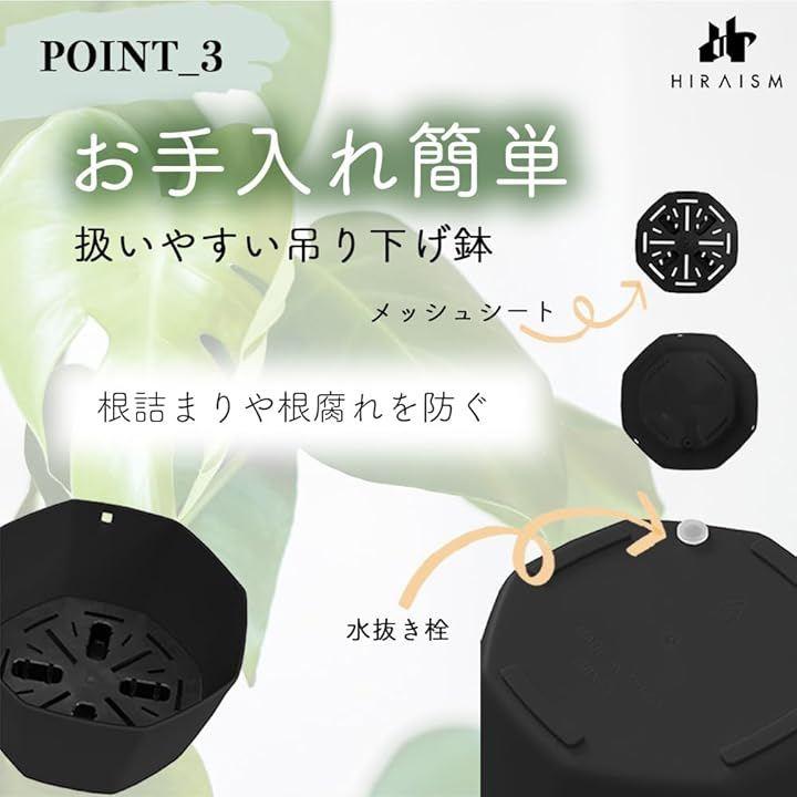「お手入れも簡単、扱いやすいハンギングプランター」鉢底にはメッシュの仕切り板付きで、そのまま土を入れても水捌けが可能です。