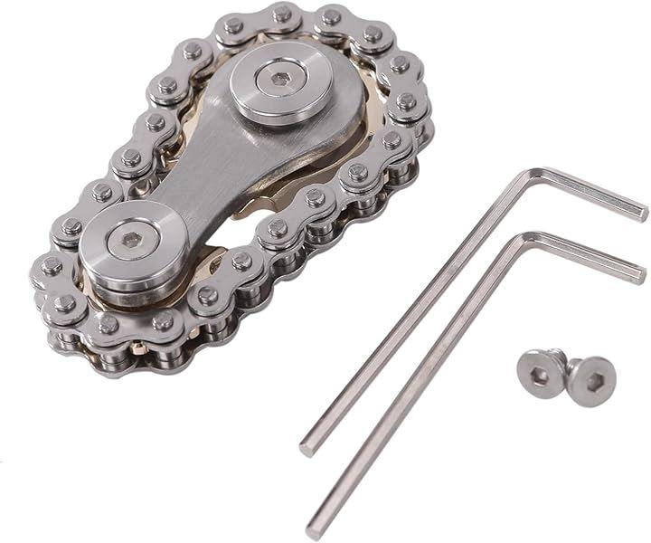「製品の特徴」車のチェーンのような繋がりが美しいハンドスピナー(ギアスピナー)。